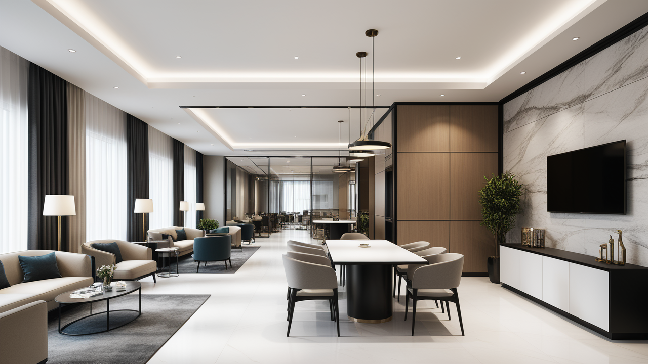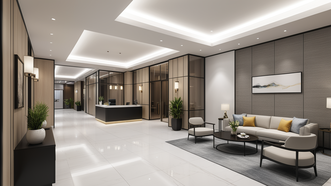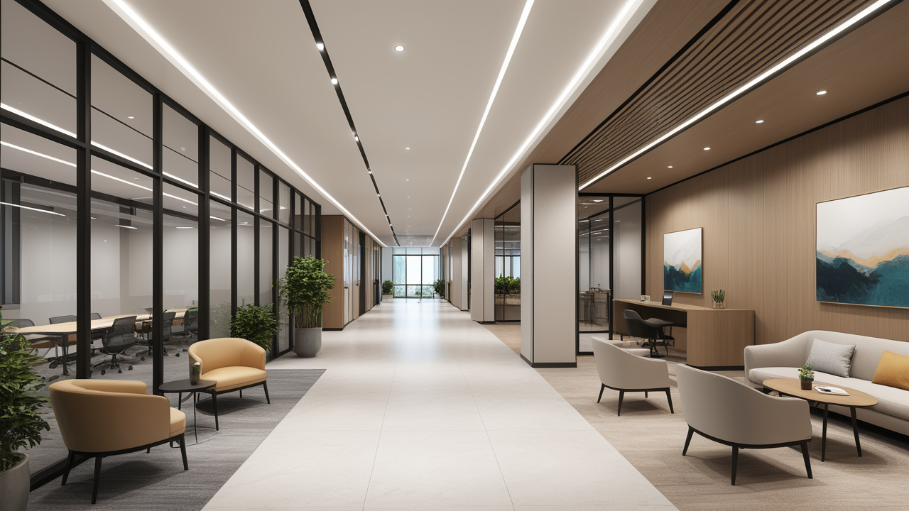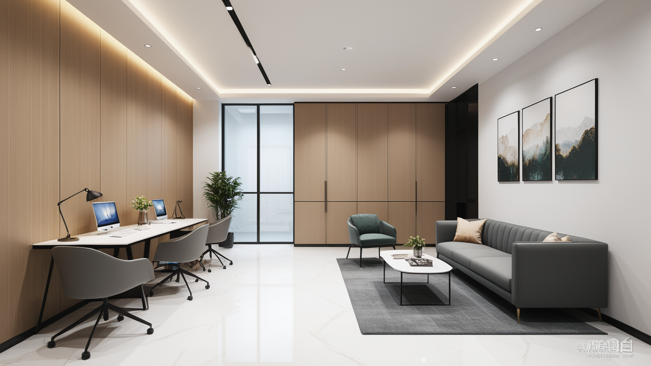 本案屬于簡約的風格,簡單而有品位,色調冷暖結合。辦公環(huán)境的風格取向、舒適與否對于提升員工的工作效率和體現(xiàn)企業(yè)文化起到至關重要的作用。辦公室整體色調采用藍灰調,使員工辦公的心情能夠沉靜下來,工作效率自然可以得到提高。有一位建筑大師曾說過:“當綠化、光和風根據(jù)人的意念從原先自然中抽象出來,它們就趨向天堂”。我們在室內引入天光設置了自然植物,將室外的感覺引入室內空間,使辦公環(huán)境更具活力。
