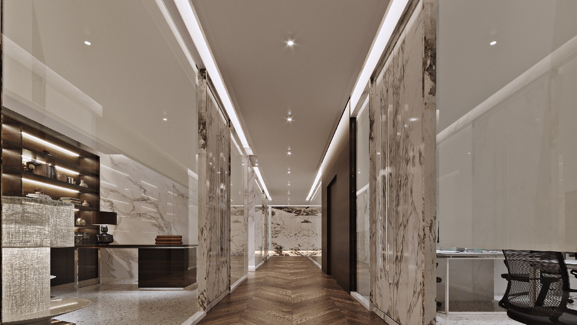 本案采用開放式辦公,傳統(tǒng)的辦公室是一種封閉式的辦公室,這種辦公室由一系列小辦公室組成,每間小辦公室只有少數(shù)職員,辦公工作在各間小辦公室里執(zhí)行,小辦公室通過回廊連接。在封閉式設計下,各種工作互不干擾并能形成一種緊密的工作群體。但對于本公司來說,這種設計方法帶來了溝通上的困難,而且不利于建立標準化的工作程序,也不利于全面管理。放式辦公室由一塊大而連續(xù)的空間組成。在這個空間里有許多不同的部門,相互之間完全沒有隔墻。辦公桌和其他辦公家具、辦公設備應排列整齊,并盡可能朝著同一方向。開放式辦公室相對于封閉式辦公室來說有極大的優(yōu)勢。