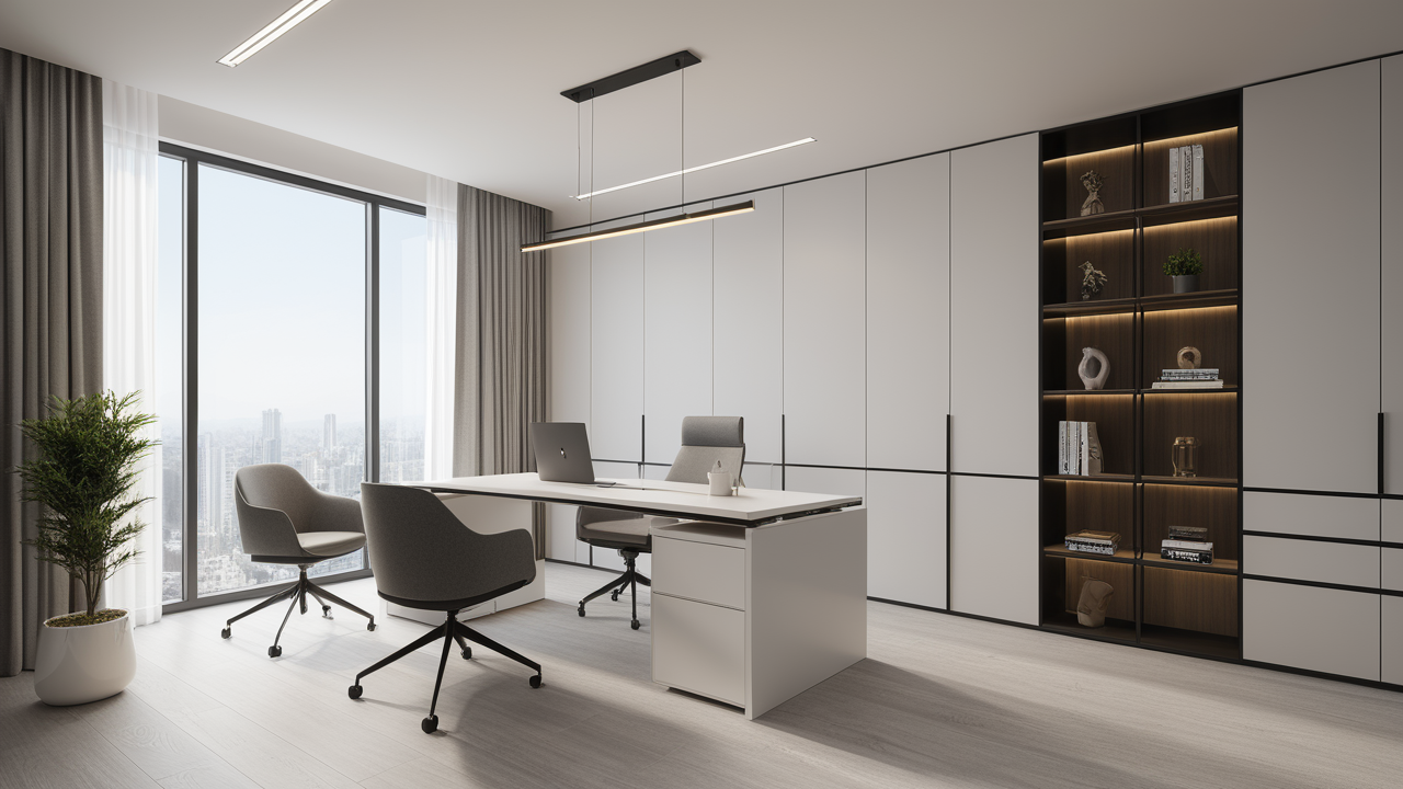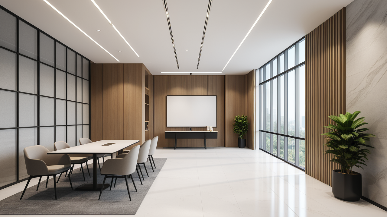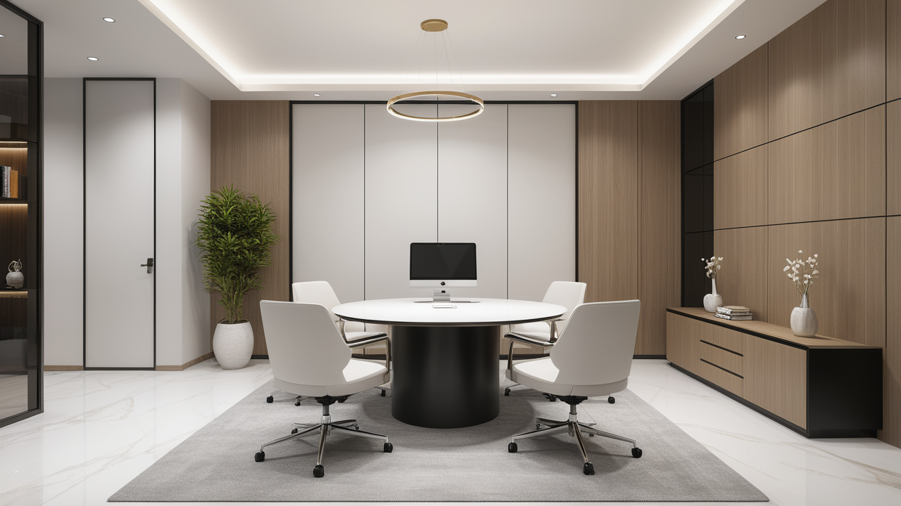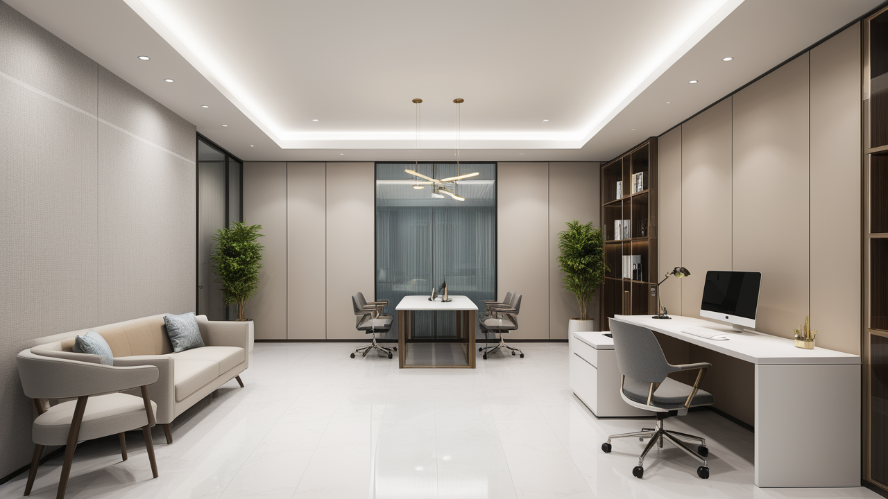 本案圍繞其“靈透”,大量使用了玻璃、銀色系列及淺色調(diào)的潔凈材料,如玻璃幕墻、銀質(zhì)鋁塑板、水晶白麻石材、?;u等,圍繞本案主題,構(gòu)筑個性化空間,該色彩搭配除了清透、雅致、穩(wěn)重、大氣之外,亦表現(xiàn)出一種力度感和效率感。滲透入貴機械制造企業(yè)之“清透感”,亦反襯企業(yè)之“柔美感”。以似乎矛盾的手法,又體現(xiàn)出古人之哲理“剛之極則柔,柔之極則剛”。老子說“上善若水”,該案則就其“善”滲透到每一個空間,極盡讓每個功能區(qū)都具有清透之靈性,盡顯靈動、清澈、時尚、大氣之空間氣韻。