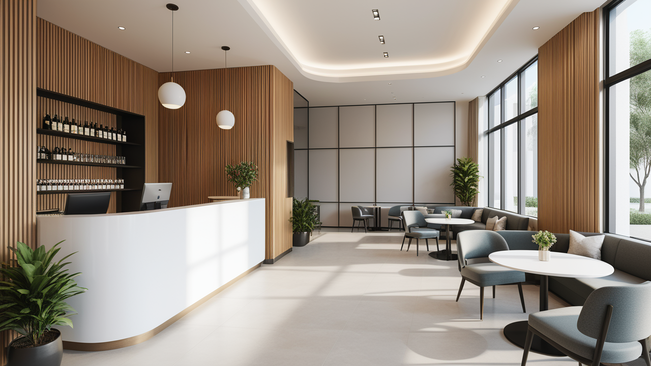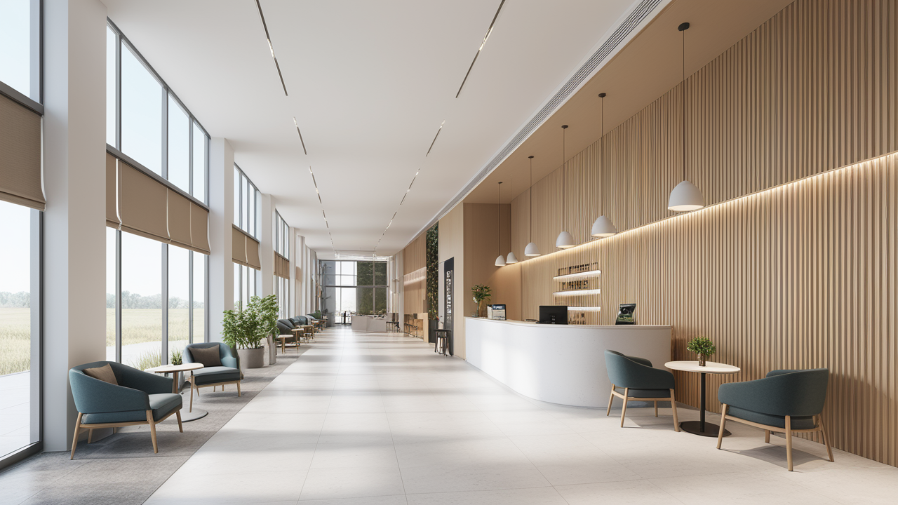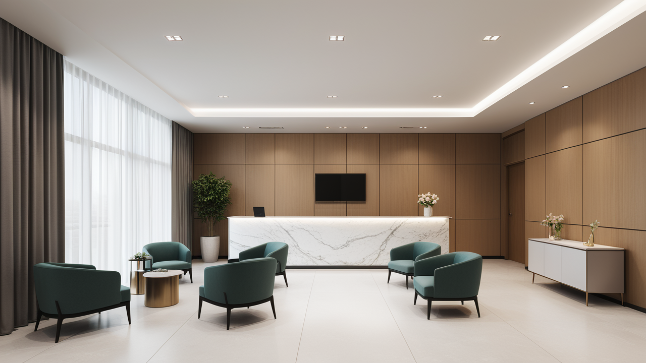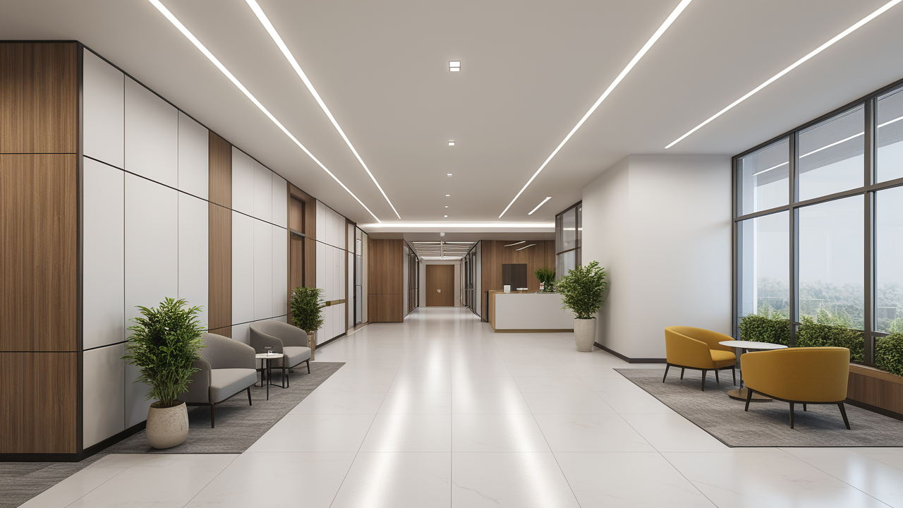 本案在這個辦公室設(shè)計中,甲方要求,有功能區(qū)設(shè)置,有總經(jīng)理,總經(jīng)理是本公司中最高的職務(wù),所以在我的設(shè)計中給他選擇了一個比較好的朝向,采光比較好、地面采用仿古顯紋復(fù)合強化淺色木地板。防滑耐磨。幾何式的辦公桌莊嚴(yán)不失人性化。自然的美巧妙的運用到設(shè)計之中,突顯對美好生活的向往。放松工作時的狀態(tài),副總經(jīng)理兩間,裝修風(fēng)格跟總經(jīng)理相符,比較統(tǒng)一。會議室,在平面功能上??紤]了合理的行動路線,東面墻對應(yīng)窗的位置設(shè)計了落地的玉砂玻璃隔墻,以滿足展示區(qū)的采光要求。