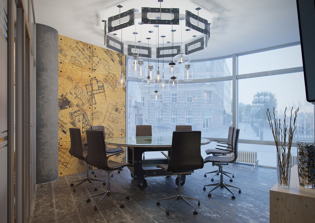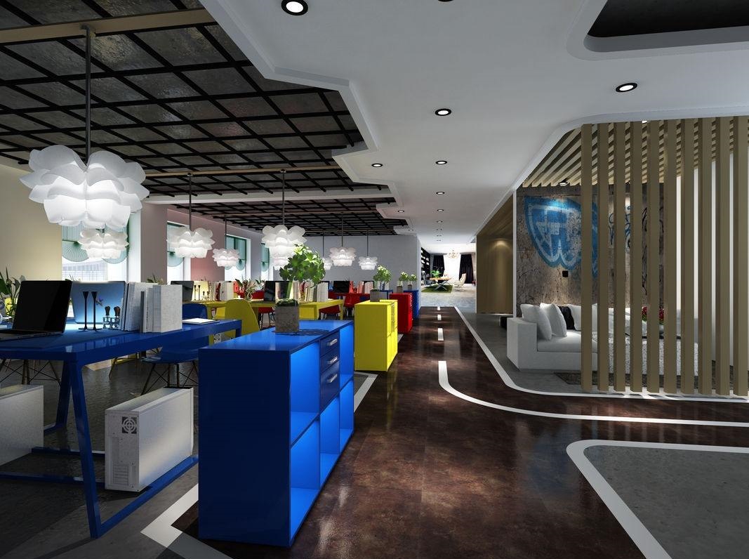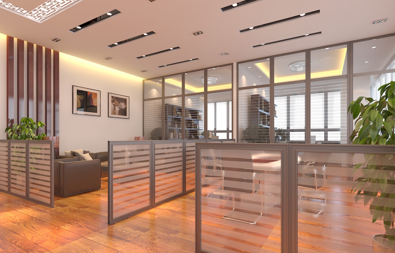 本案設(shè)計(jì)首先闖入眼簾的是企業(yè)形象墻,以其企業(yè)文化的新興、蓬勃、嚴(yán)謹(jǐn)為主題,兩側(cè)以“居有竹、步步高”的銀色墻柱帶來(lái)視覺(jué)沖擊感,加上企業(yè)形象色的類(lèi)比色、淺色石材及不銹鋼條的運(yùn)用,顯示出金屬的質(zhì)感和工業(yè)文明的主題;華堂上方呼應(yīng)以直線(xiàn)為主調(diào)、大筆勾勒而出的時(shí)尚型弧面吊頂,大直大方顯示出強(qiáng)烈的縱深感,加之以清透、明媚的光色渲染,工整氣派、大家風(fēng)范,反襯出貴公司辦公樓的現(xiàn)代時(shí)尚特性,以干練快捷的設(shè)計(jì)節(jié)奏,展示出質(zhì)量與效率并舉的時(shí)代精神。
