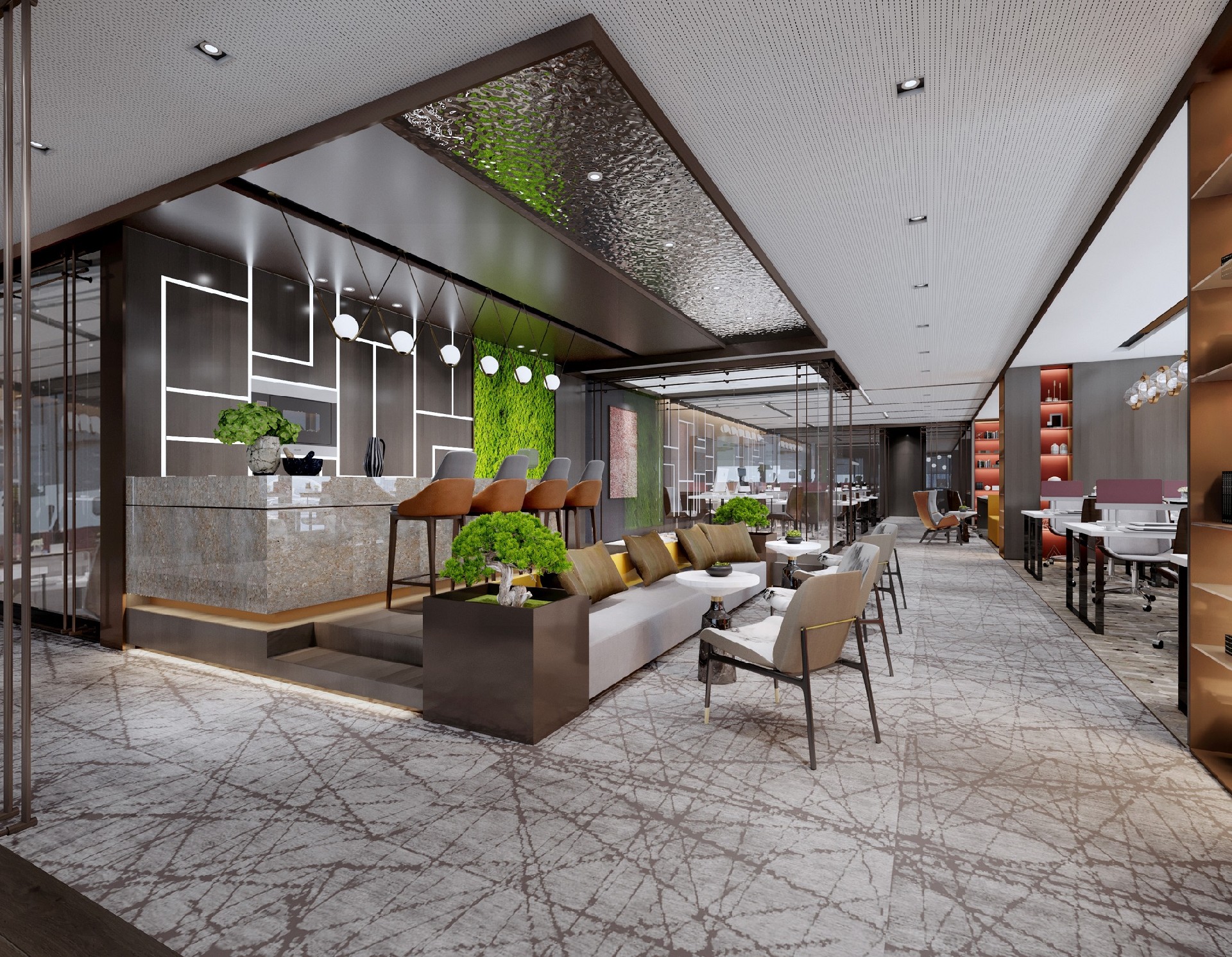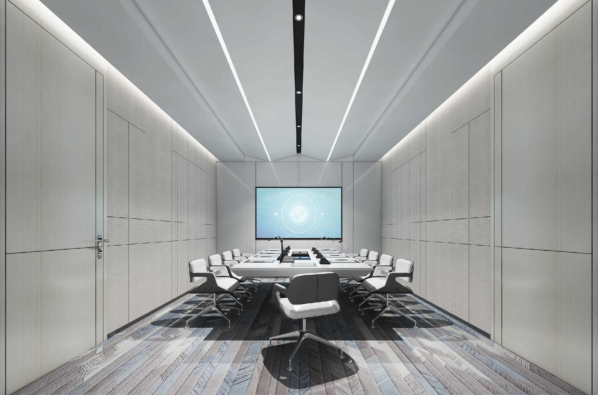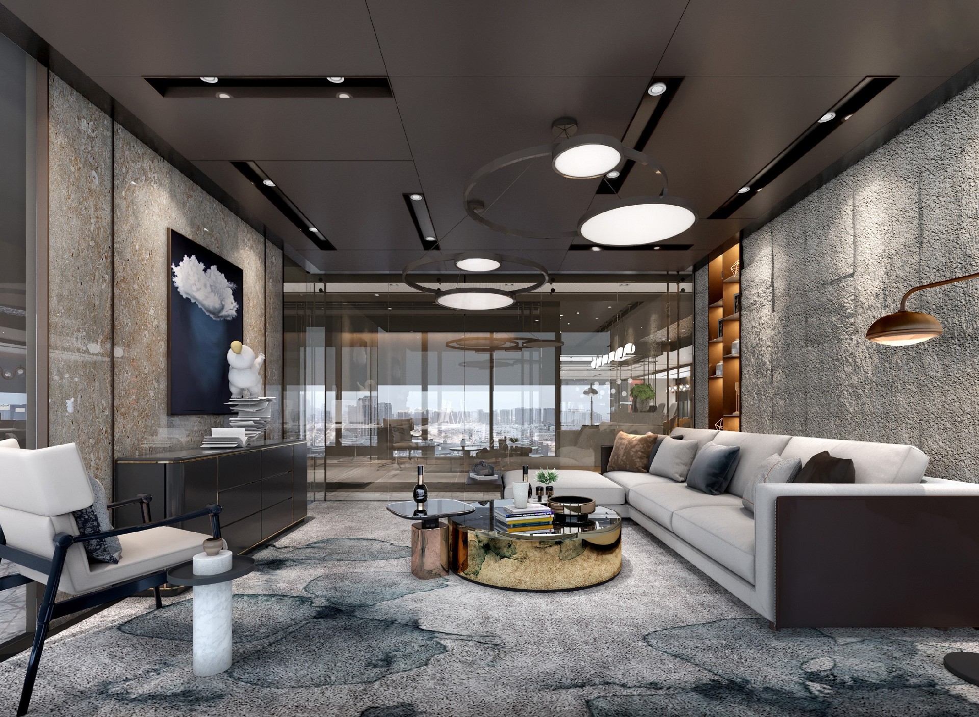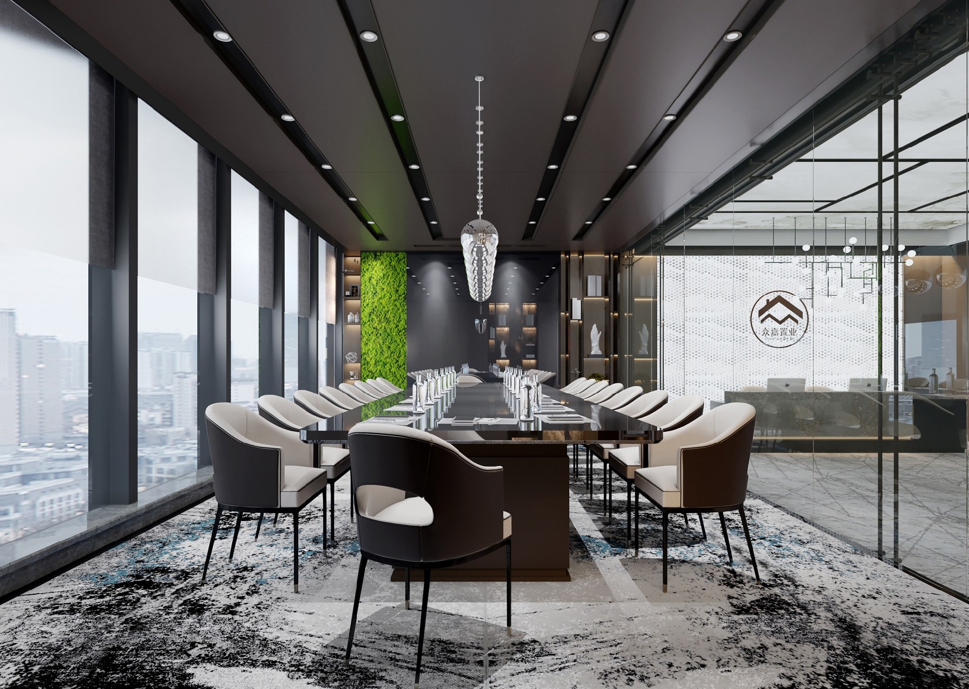 本案在這個(gè)辦公室設(shè)計(jì)中,甲方要求,有功能區(qū)設(shè)置,有總經(jīng)理,總經(jīng)理是本公司中最高的職務(wù),所以在我的設(shè)計(jì)中給他選擇了一個(gè)比較好的朝向,采光比較好、地面采用仿古顯紋復(fù)合強(qiáng)化淺色木地板。防滑耐磨。幾何式的辦公桌莊嚴(yán)不失人性化。自然的美巧妙的運(yùn)用到設(shè)計(jì)之中,突顯對美好生活的向往。放松工作時(shí)的狀態(tài),副總經(jīng)理兩間,裝修風(fēng)格跟總經(jīng)理相符,比較統(tǒng)一。會議室,在平面功能上??紤]了合理的行動路線,東面墻對應(yīng)窗的位置設(shè)計(jì)了落地的玉砂玻璃隔墻,以滿足展示區(qū)的采光要求。