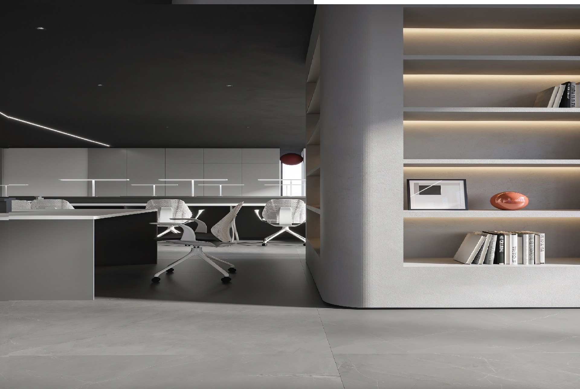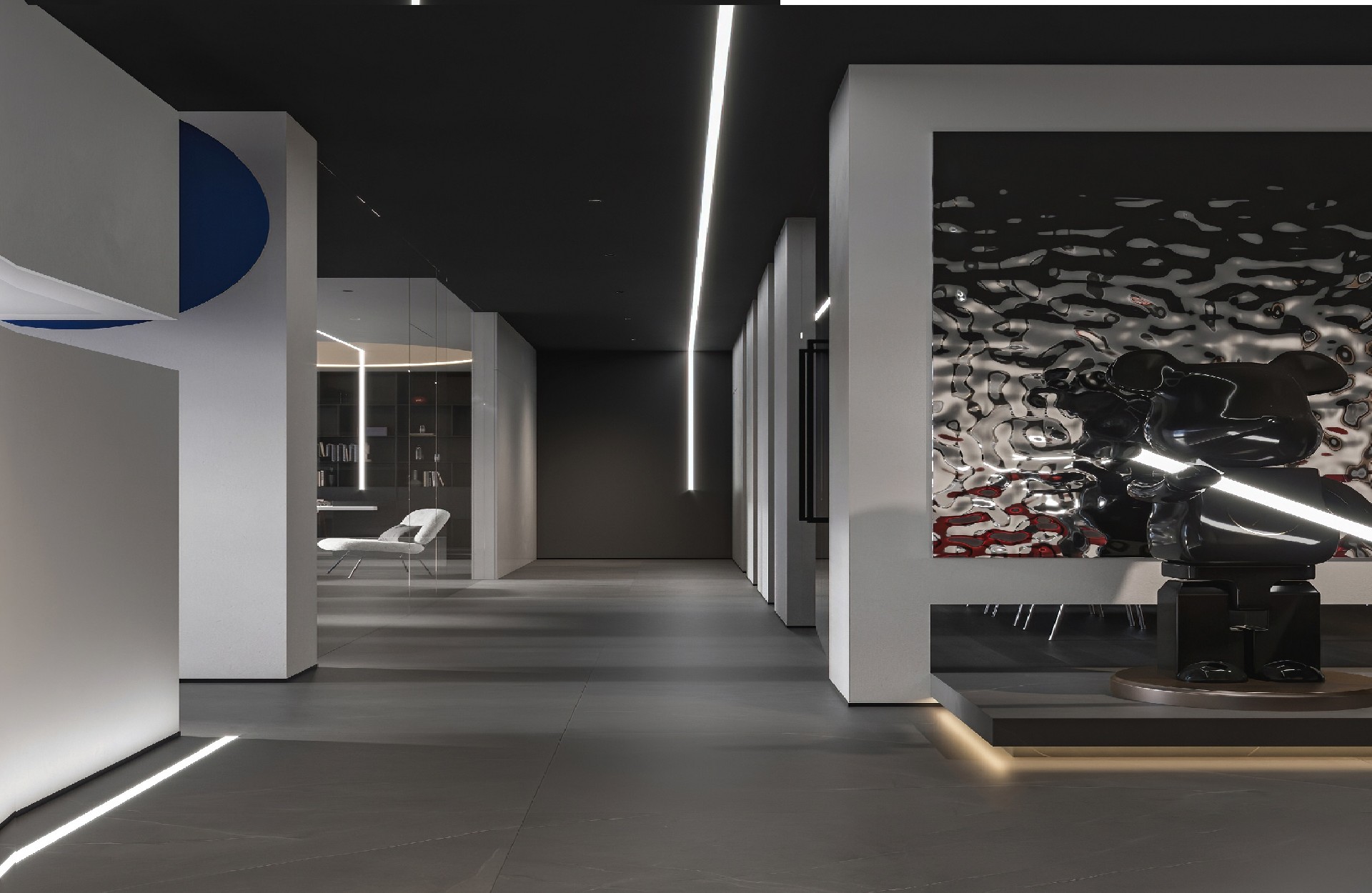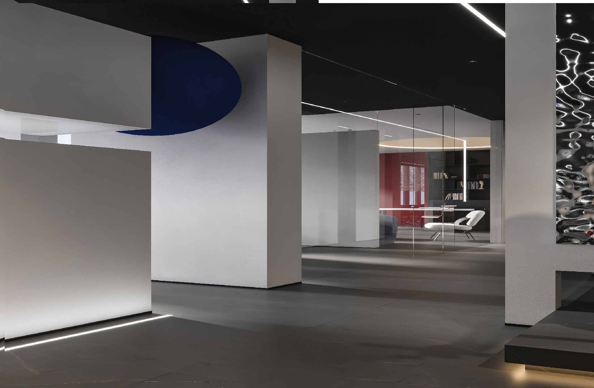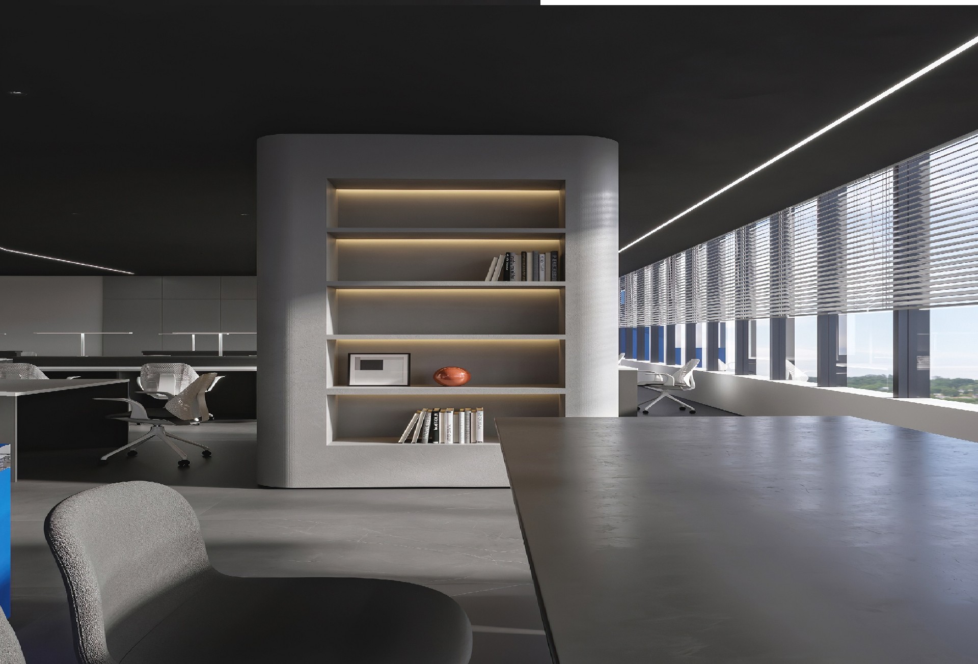 本案屬于簡(jiǎn)約的風(fēng)格,簡(jiǎn)單而有品位,色調(diào)冷暖結(jié)合。辦公環(huán)境的風(fēng)格取向、舒適與否對(duì)于提升員工的工作效率和體現(xiàn)企業(yè)文化起到至關(guān)重要的作用。辦公室整體色調(diào)采用藍(lán)灰調(diào),使員工辦公的心情能夠沉靜下來,工作效率自然可以得到提高。有一位建筑大師曾說過:“當(dāng)綠化、光和風(fēng)根據(jù)人的意念從原先自然中抽象出來,它們就趨向天堂”。我們?cè)谑覂?nèi)引入天光設(shè)置了自然植物,將室外的感覺引入室內(nèi)空間,使辦公環(huán)境更具活力。