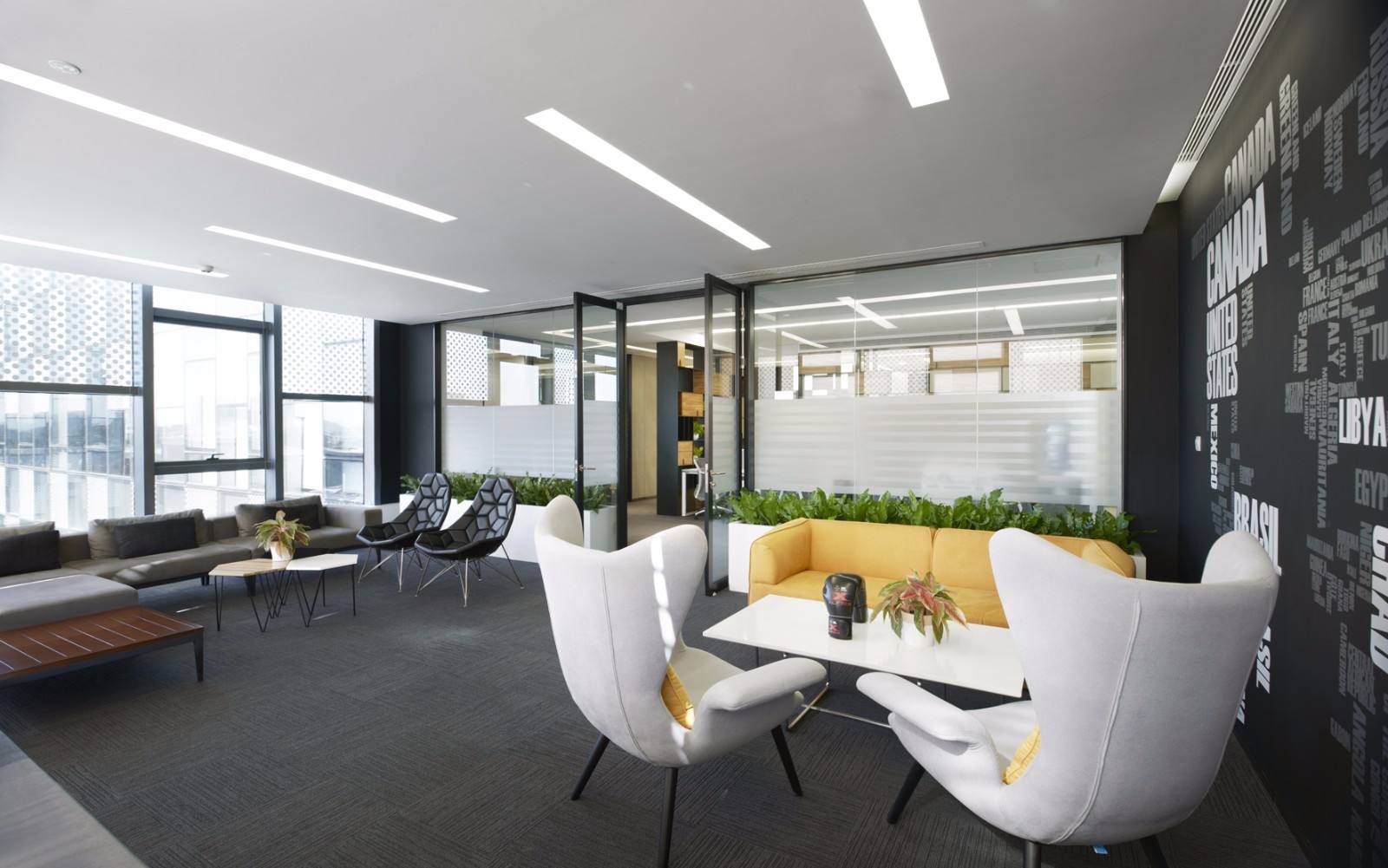 現(xiàn)代感:目前很多辦公室裝修時,為了滿足思想交流的需要,加強民主,往往采用共享空間的理念,使辦公室開放。這種逐漸興起的設(shè)計已經(jīng)成為現(xiàn)代新辦公的標志,而現(xiàn)代辦公新空間的理念也體現(xiàn)在面對合并。在現(xiàn)代裝飾設(shè)計中,逐漸注重將自然環(huán)境引入室內(nèi),連接室內(nèi)外環(huán)境,使室內(nèi)外融為一體,給辦公空間帶來生機和活力。